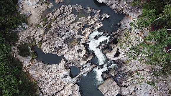 位于海南保亭黎族自治县的呀诺达景区拥有中国唯一地处北纬18度的热带雨林,它北连五指山南邻海棠湾,景区内有以雨林、山谷、瀑布等自然景观为基础,同时融合了黎苗民俗和南药文化于一体的自然和人文旅游资源。在之前将近10年的运营中,已有总量超过一千万的游客来这里感受热带植物的繁茂、穿越水帘和峡谷间踏瀑戏水、乘滑索从上空飞跃雨林,或登上观景台上欣赏海上日出。而在近日与大疆共同合作成为“无人机友好型景区”后,呀诺达景区更以长期空域和门票优惠面向爱玩无人机航拍的游客敞开大门。