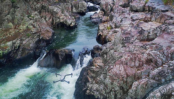 晴空之下,一架无人机在青山绿水之间自由地飞翔。它依次飞过热带雨林、亭台池塘、林间瀑布、丘壑山谷,以及片片水田,之后返航回到无人机主人身边,带着一路拍摄的照片和视频缓缓降落。