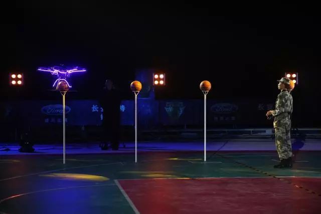 张绪晟面对复杂的现场环境沉着冷静,在没有任何视觉设备和仪器辅助瞄准的情况下,克服一切干扰,熟练操作无人机抓取一颗标准大小的篮球,精准操控并调整无人机姿态和位置,从20米高空投向篮筐,“咚”的一声,首球命中,紧接着第二个,第三个……