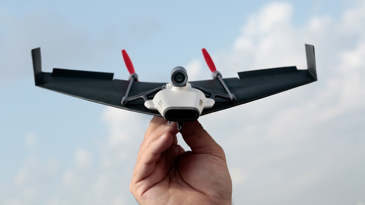 不过,它的续航能力一般,只能玩10分钟就会掉下来。一般的纸飞机经过几次着陆,机头位置就会坏了。但它头部的缓冲装置能让它的寿命大大增长。另外,使用者还可以戴上VR眼镜,以第一视角操控飞机,真实体验一把当飞行员的感觉。