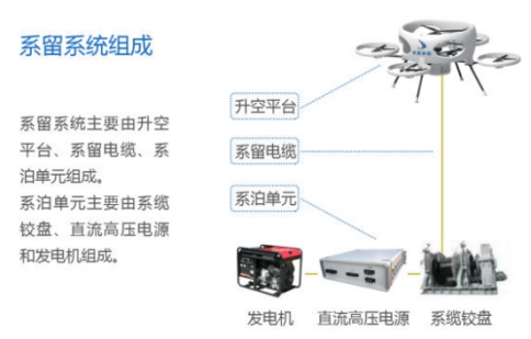 该公司作为系留无人机行业的领军企业产品作为高空基站具备三大特点。一是续航时间长。采用光电复合缆为无人机和RRU供电,续航时间可达24小时以上。二是灵活性强。由小型越野车搭载无人机通信系统,可快速到达通信需求现场,满足保障需求。三是可扩展性强。根据应急通信的不同场景,可灵活配置全向或定向天线,选择分组化微波或无线环网传输设备,安装模块化、飞控半自动化,普通人员短期培训即可上岗。接到应急通信保障任务后,该高空基站能够在10分钟之内快速升空至100-300米,覆盖面积近100平方公里以上,是200米以往高度的2倍。全天候不间断提供通信保障、上网等通信保障,平均下载速率为36.4Mbps,上传速率为5.47Mbps,平均语音MOS值为3.4,可同时为近千个手机用户提供即时通信服务。