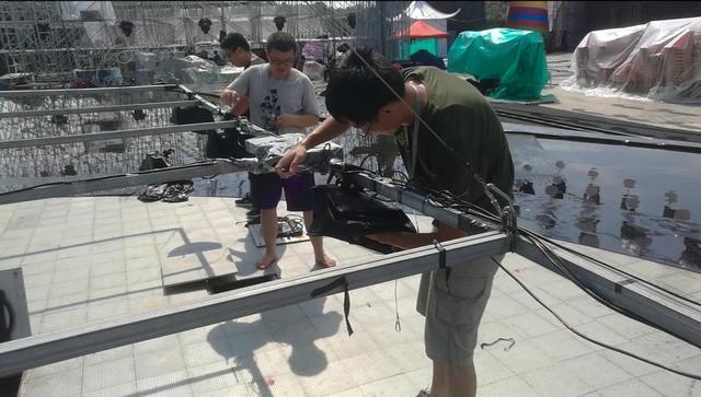 当时节目录制地点在江西仙女湖,这是户外舞台演出录制,是OPT无人机编队的首次户外展示,由于当时正值雨季,彩排的那几天几乎每天都有中到暴雨,无人机表演团队要客服天气、场地等因素,还要克服来自现场的LED电子屏、舞台灯光以及音响设备等带来的光学和电磁干扰,更要在没有顶棚的户外舞台搭设一个OPT动作捕捉系统。当时为了能够固定住安装摄像头的架子,无人机编队项目组的同事们甚至是动用了威亚设备来进行固定,可谓是绞尽脑汁。其实像这种户外的无人机编队表演,最考验人的就是环境问题,常常要克服很多意想不到的困难。