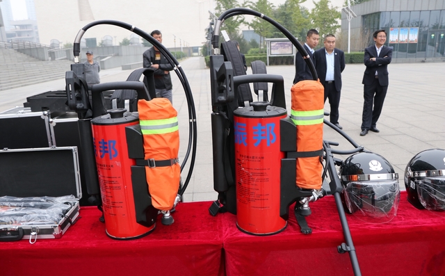 消防用的背包,里面有手套、安全绳、灭火器等,有了它,小火轻松扑灭