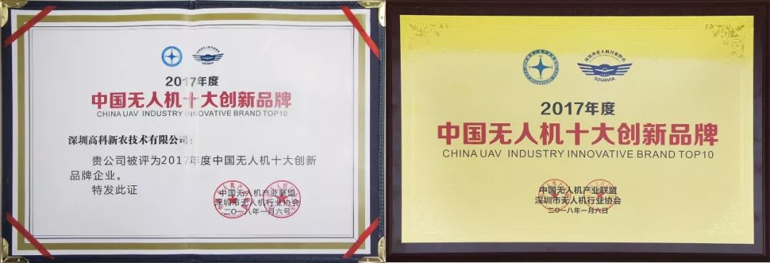 为推动无人机产业健康有序发展,强化无人安全管控,促进技术创新模式创新,加强各方资源整合协同,2018年1月6日,由深圳市无人机行业协会、中国无人机产业联盟积极打造的无人机高端交流平台——2018第三届无人机百人会在深圳召开,高科新农受邀参加,并荣获“2017中国无人机创新十强”称号。