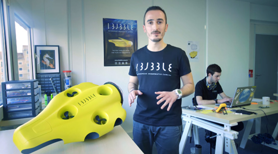 法国一家成立不到两年的创业公司——iBubble,发布了一款潜水无人机,并且邀请了世界水下屏息记录保持者Guillaume Néry,在法国尼斯附近的海域进行了潜水拍摄展示。