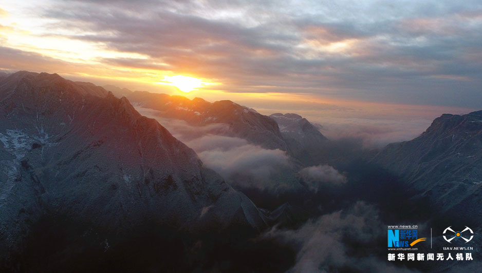 图为无人机航拍视角下的重庆市巫溪县兰英大峡谷日出。