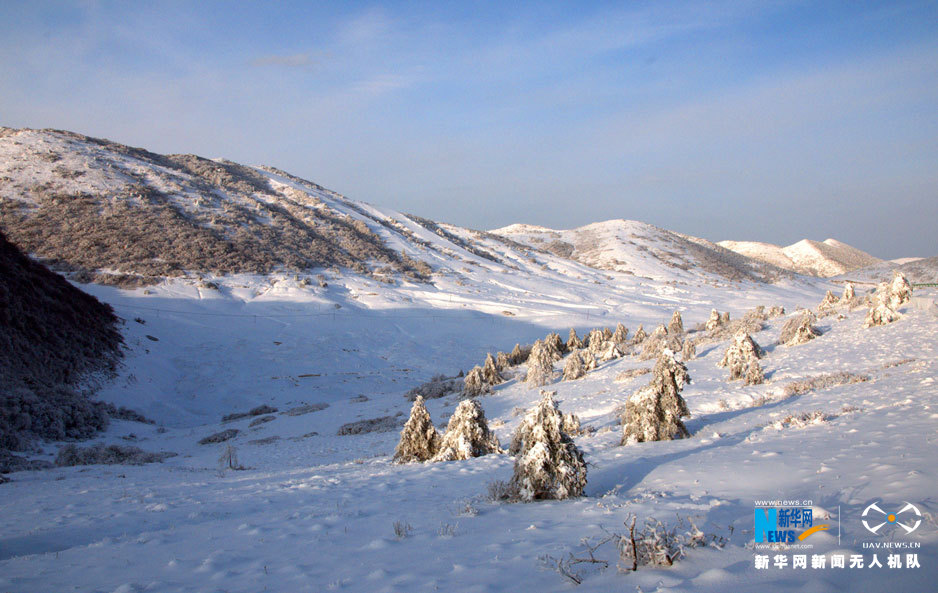 图为无人机航拍视角下的重庆市巫溪县红池坝,大雪覆山川,江山美如画。