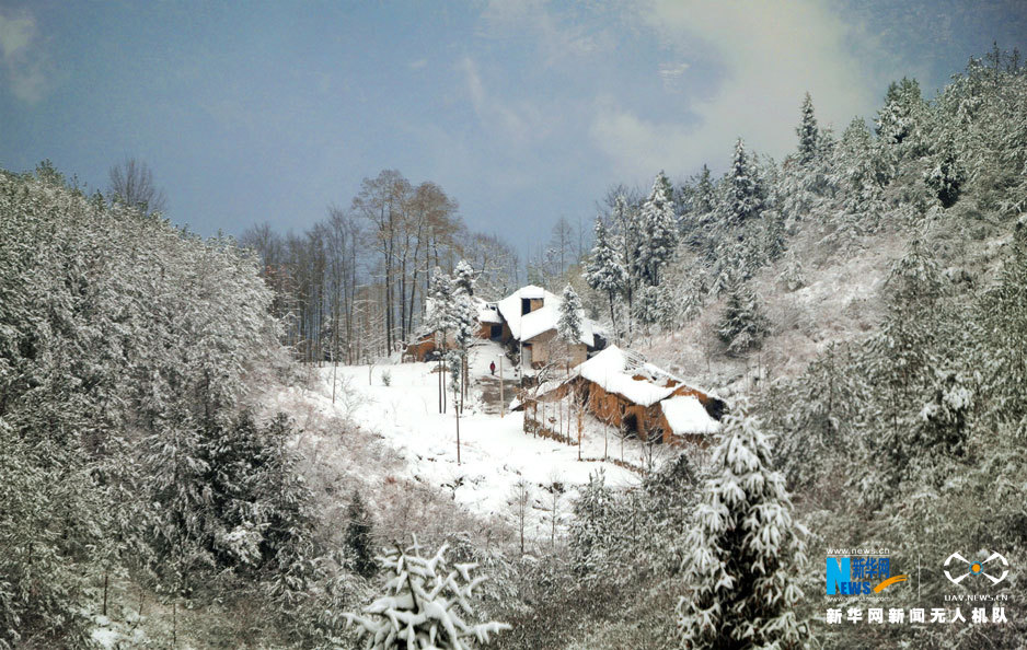 瑞雪兆丰年,也“造”新景。2018年伊始,位于三峡库区的重庆市巫溪县迎来漫天大雪,时至今日,该县高海拔地区覆雪仍未融化,苍茫旧地迎雪白新颜。图为无人机航拍视角下的重庆市巫溪县兰英大峡谷一村落,白雪皑皑。