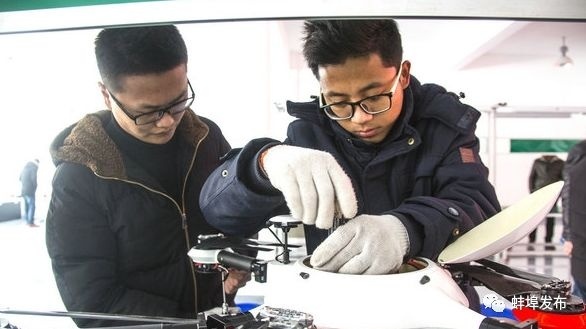 1月8日上午,五河县中小产业园内,首台五河产无人机在蚌埠幻客无人机有限公司车间正式下线。