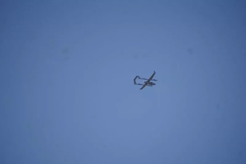 本机型前期测试了航时、飞控 、载重等,今日完成了空中悬停-平飞测试。本次试飞十分圆满,飞行速度快而不失平稳,并实现了空中悬停等一般固定翼无人机难以实现的功能。