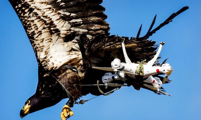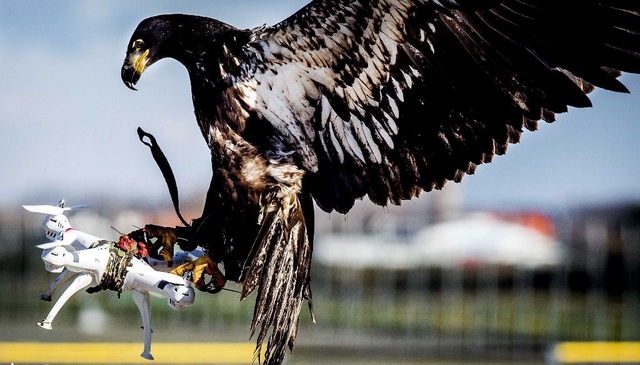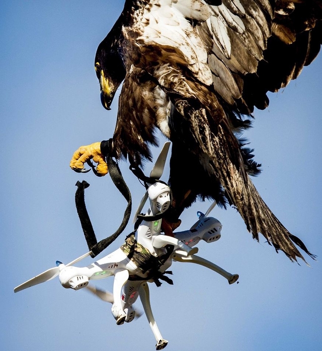 话说这虽是2016年3月份的“旧闻”,但现在看来似有参考意义——荷兰警察和一家名为“空中防卫”的公司合作,训练鹰在空中抓住无人机。