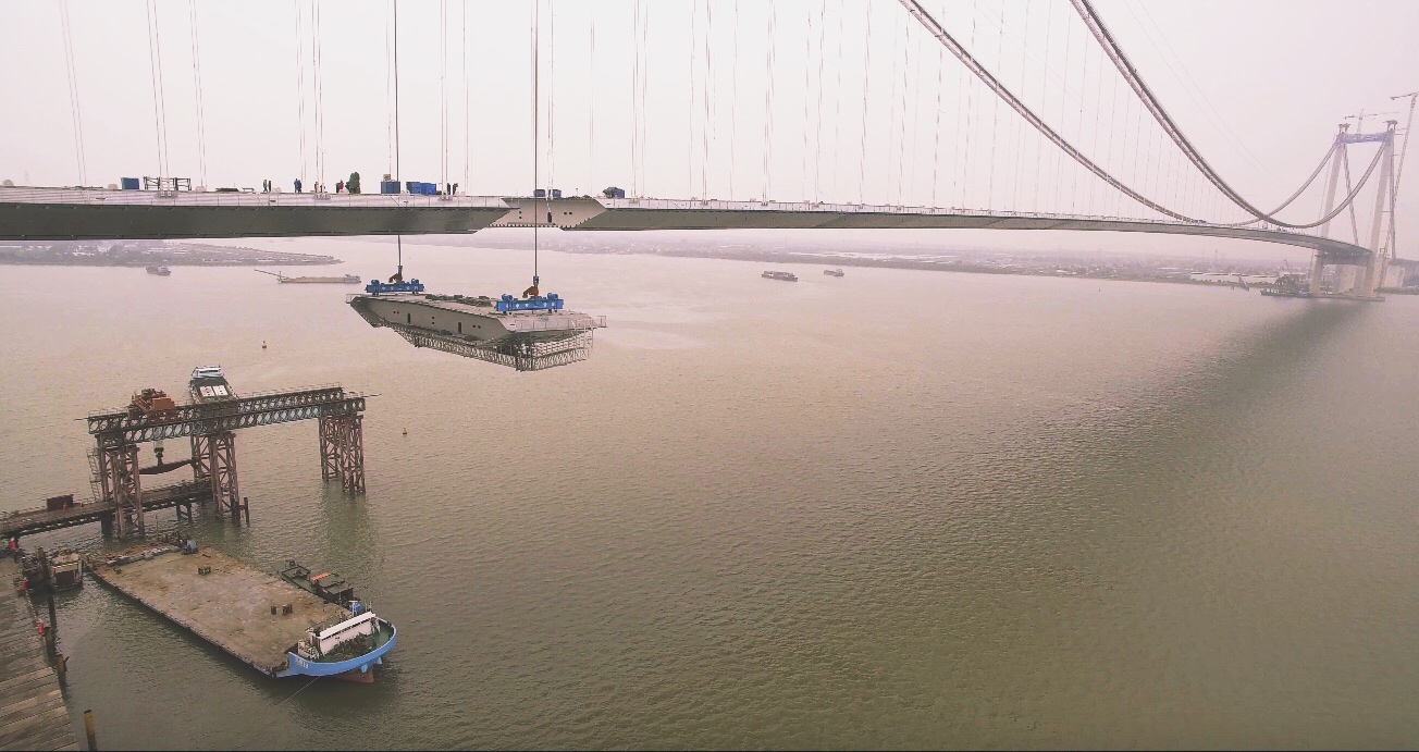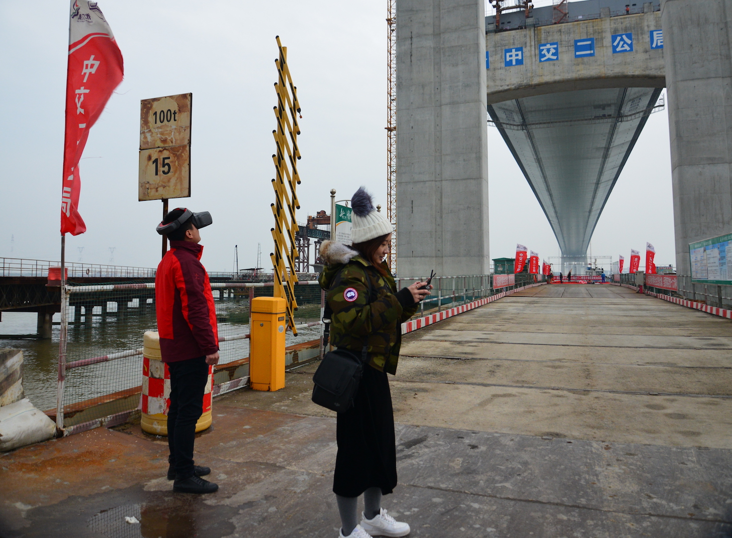 1月9日,世界最宽钢梁箱悬索桥-虎门二桥大沙水道桥合龙仪式上,记者再次见到无人机航拍出动。一块重达350吨的钢箱梁,通过悬索桥专用跨缆吊机,将从珠江河面上吊到60米高的桥面上,并与其它桥面无缝拼接。若按传统拍摄,记者只能在地面或是桥上寻找角度,无人机的出现将打破传统拍摄的局面,合龙过程及整座大桥全貌一览无遗。