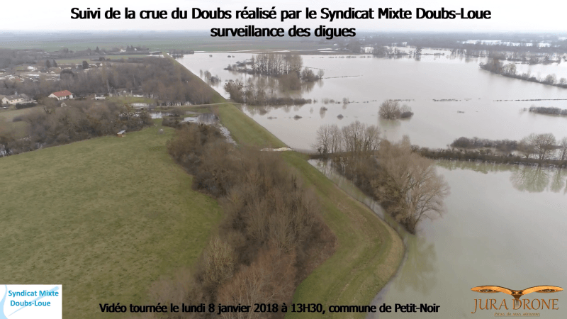 由于这次是法国 17 年以来最严重的水灾,法国汝拉省(Jura)杜卢双河联合防洪议会(le Syndicat Mixte Doubs Loue (SMDL)),决定出动无人机密切监视卢河(The Loue)和杜河(The Doubs)的水位变化和水坝坝体的状态,以减低河流决堤的风险。