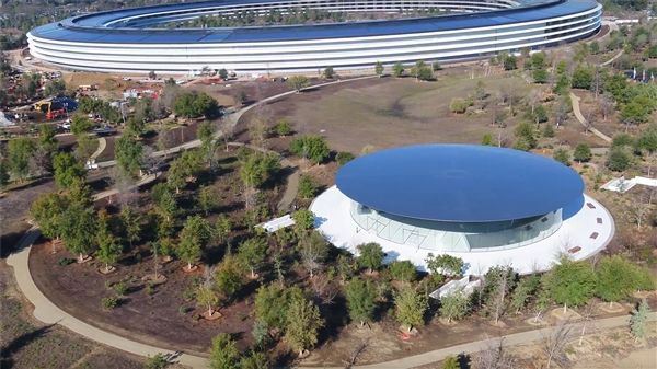 在新拍摄的视频中,您还可以简要地看到史蒂夫·乔布斯剧院和苹果园区的游客中心,主要的中庭以及外面员工可用餐的餐厅露台。