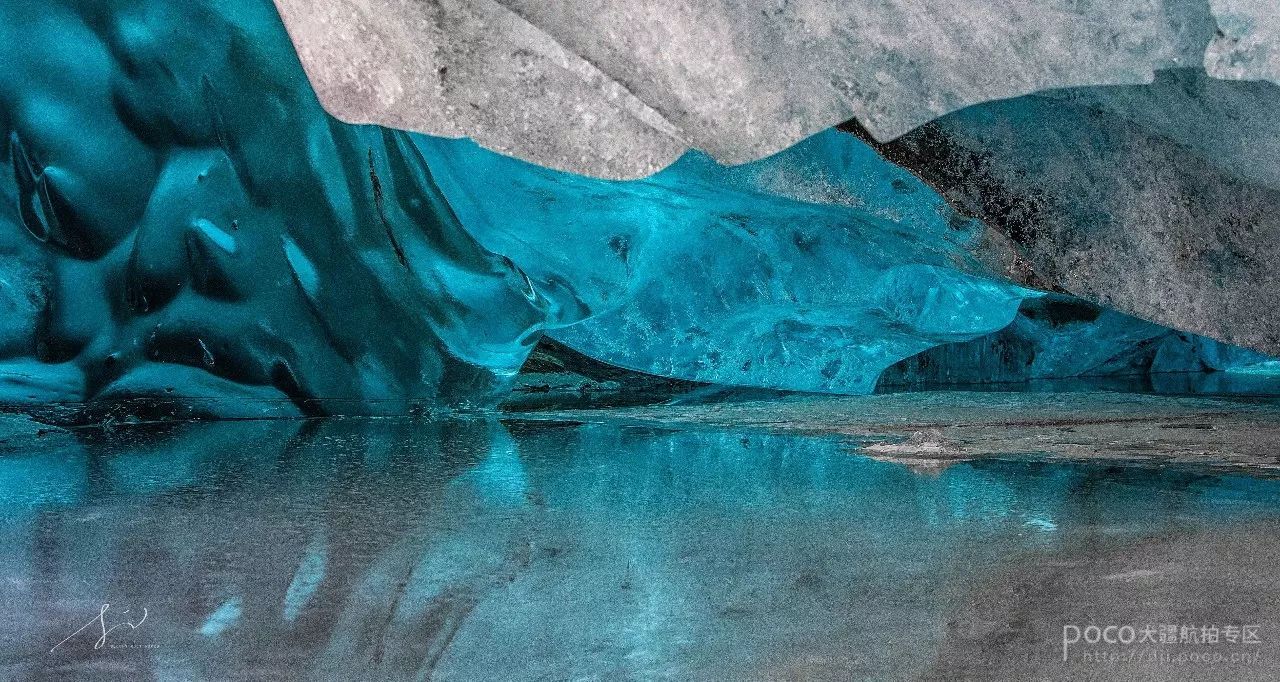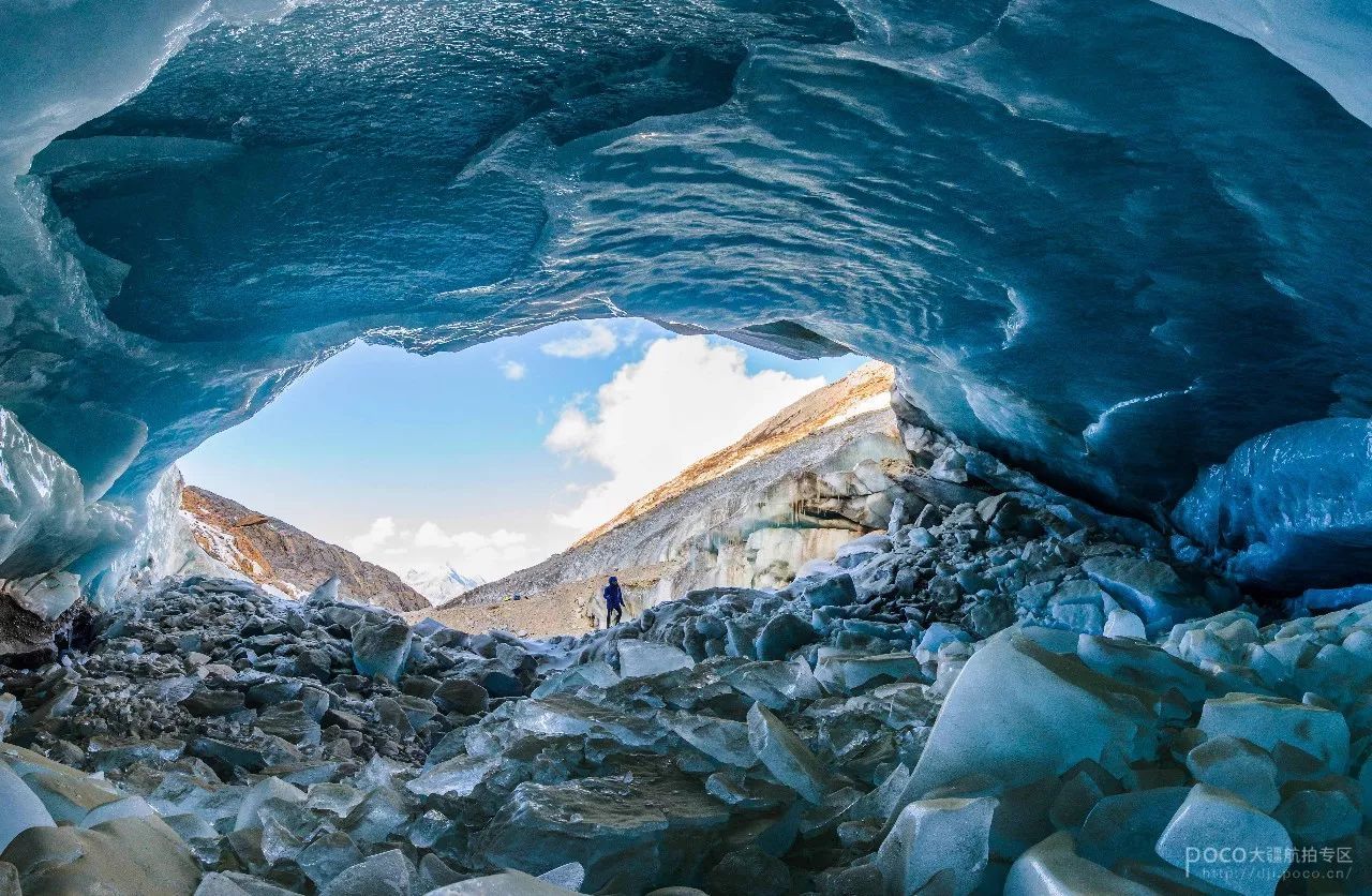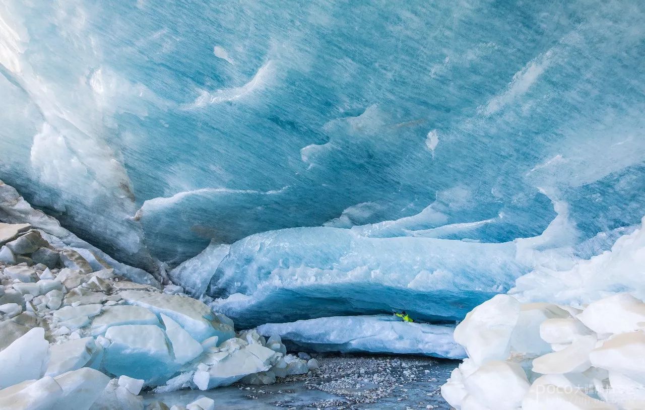 而冰川的拍摄就不一样了,需要“亲密接触”,距离的拉近才能拍摄到冰川的细节,这才是它迷人的地方,尺度、线条呈现出来的美感。所以,拍摄冰川的时候准备要更充足,装备需要更为便携,大疆的“御”在这里就发挥出优势了。此外,拍摄时如果需要深入到冰川的腹地,以防万一,要做好保险安全等措施,最好是两三个人一起前往,并且准备上专业户外装备,如冰刀、冰爪之类的。