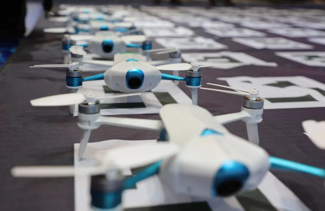 在展会现场,高巨创新还给现场观众带来惊喜,充满艺术感的科技大赏-无人机编队表演。