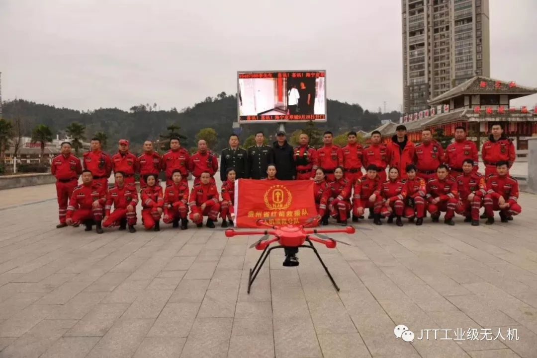 演练圆满成功后贵州红箭救援队与智璟科技T60V2救援无人机合影