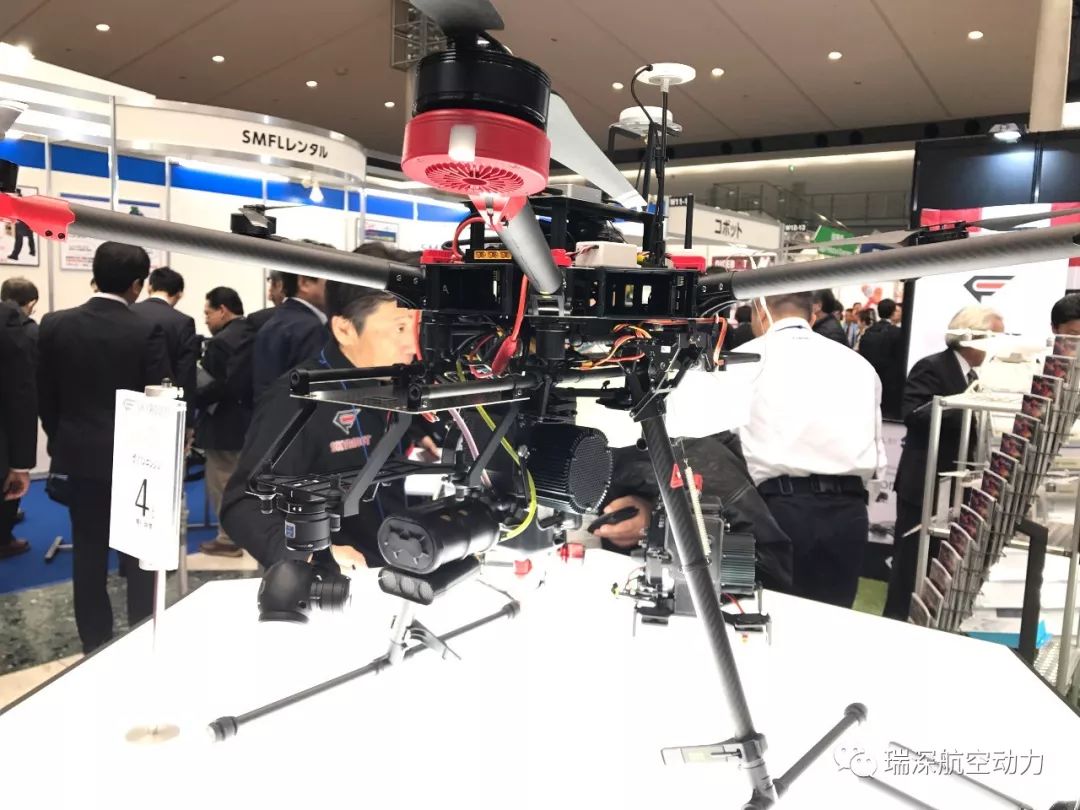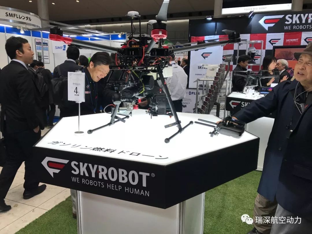 日本Skyrobot公司展示了搭载瑞深H2混和动力的多旋翼无人机,搭载混动系统后,无人机具备超长的续航时间,在巡检、灾害防护、搜索救援、安防等领域应用市场巨大。