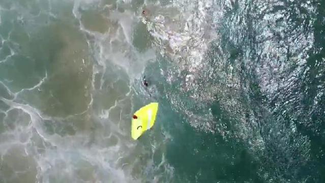 Jai Sheridan说,这两人虽然在大浪中游得精疲力竭,但毫发无伤,无人机首次用于当地海滩救援,效果良好。