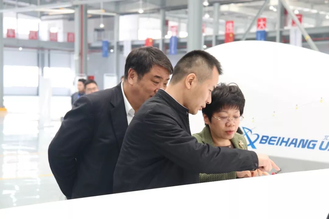 陈书记实地参观了天鹰无人机,了解了北航无人机项目落地台州的历程和天鹰无人机的结构、性能及市场前景,与公司员工进行了亲切交谈,询问了公司生产、员工生活情况,并表示台州市委、市政府将一如既往地做好服务、支持和保障工作,全力以赴做好空域报批等相关工作,努力为项目团队后续工作的展开创造更优环境。