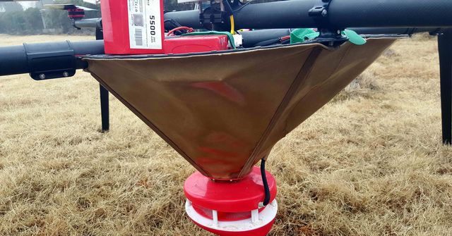现场这一台大型植保无人机是多功能机型,不仅可以喷洒农药,还可以播种和撒化肥。在低空喷洒,每分钟可完成一亩地的作业。