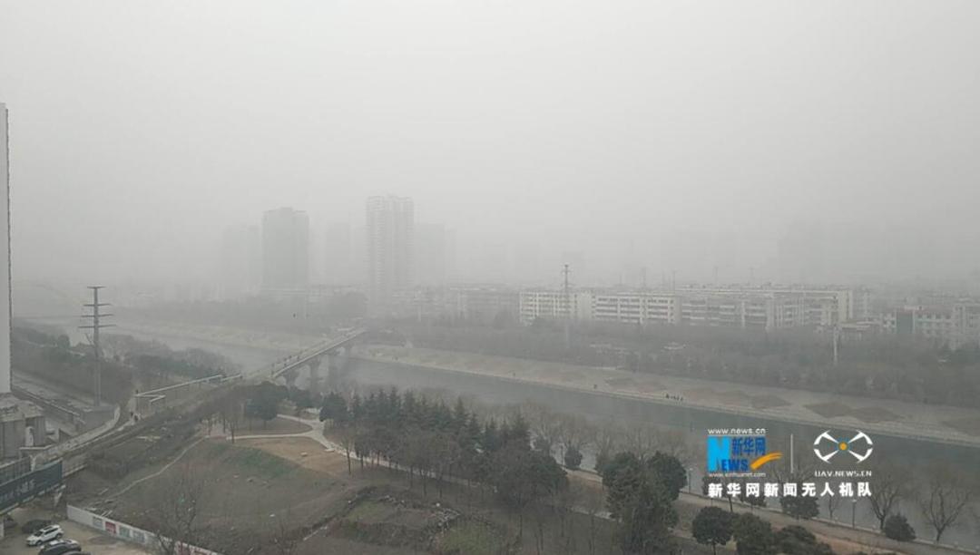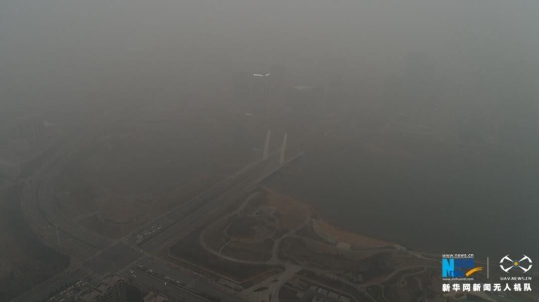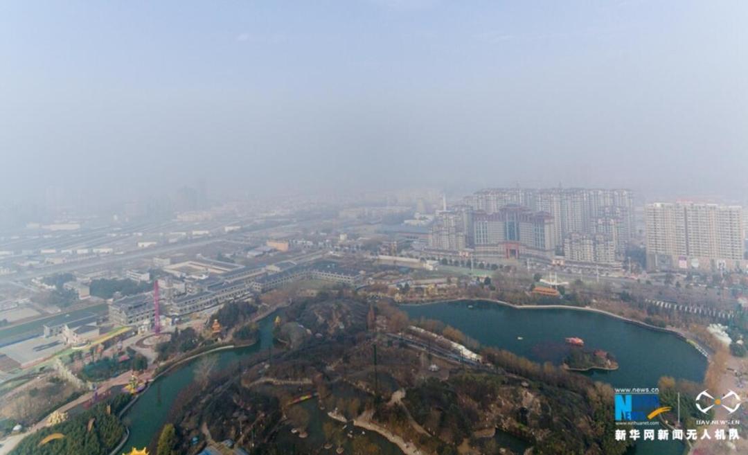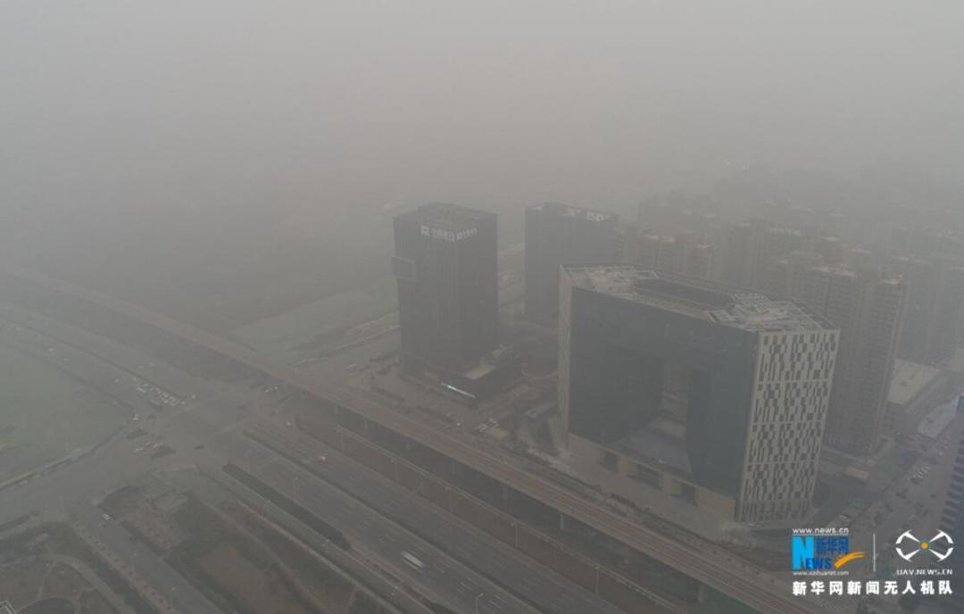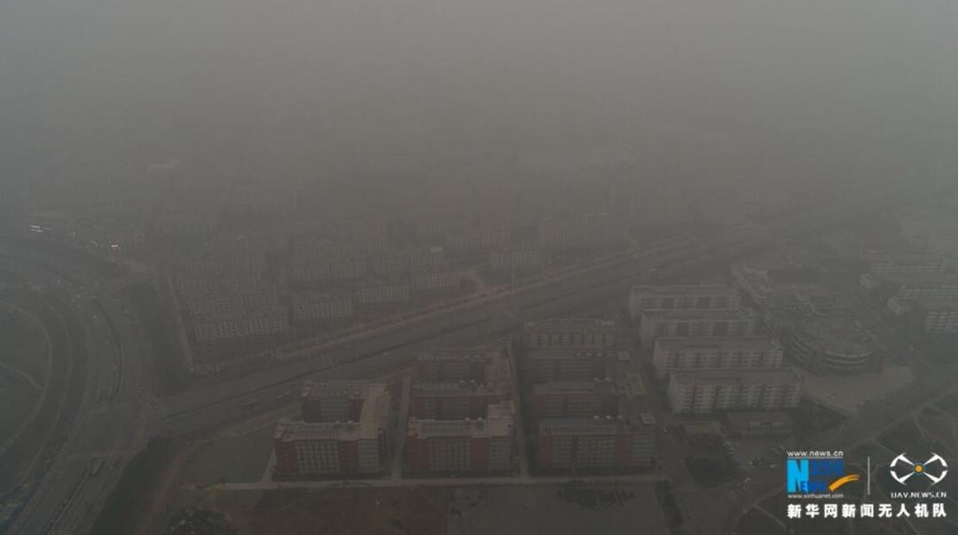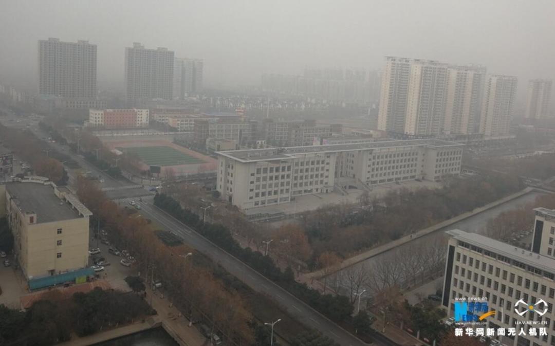 河南省环境污染防治攻坚办发出通知,要求各地将12日启动的重污染天气橙色预警延长至23日。无人机对全省11个城市进行航拍,记录了处于雾霾笼罩下的中原大地。