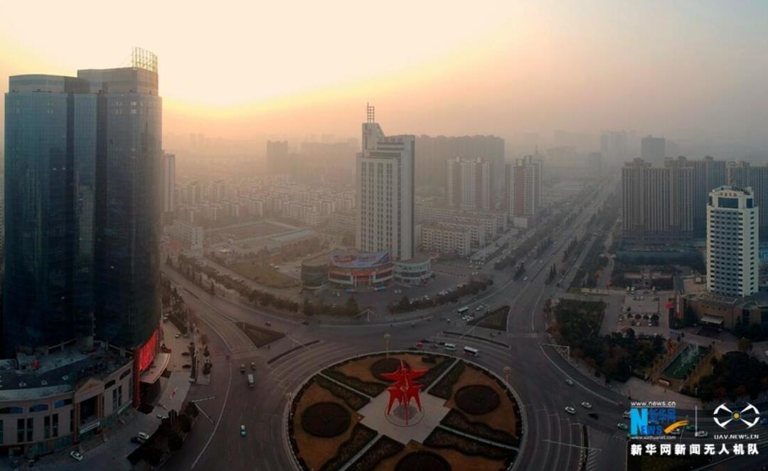 2018年1月19日,航拍商丘中心城区。