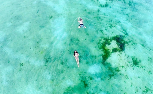 澄澈的蓝色与白色沙丘相交形成壮观的景象,美得令人窒息。