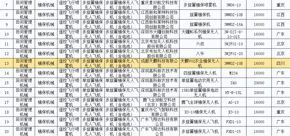 去年年末,天麒科技最新推出的全自主植保无人机——天麒V02,作为四川唯一入围农用无人机,进入国家无人机购置补贴试点省市重庆试点产品名录。