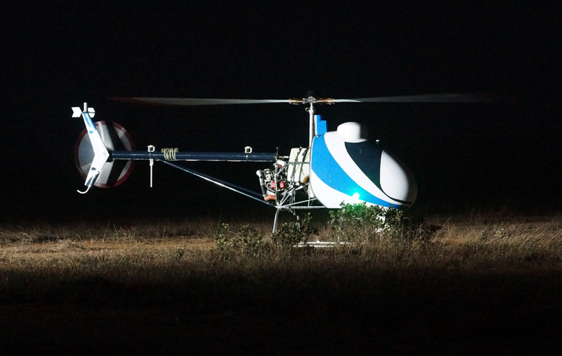 2018年1月22日晚,成功完成夜间巡检任务的无人直升机稳稳降落在空旷的地面。