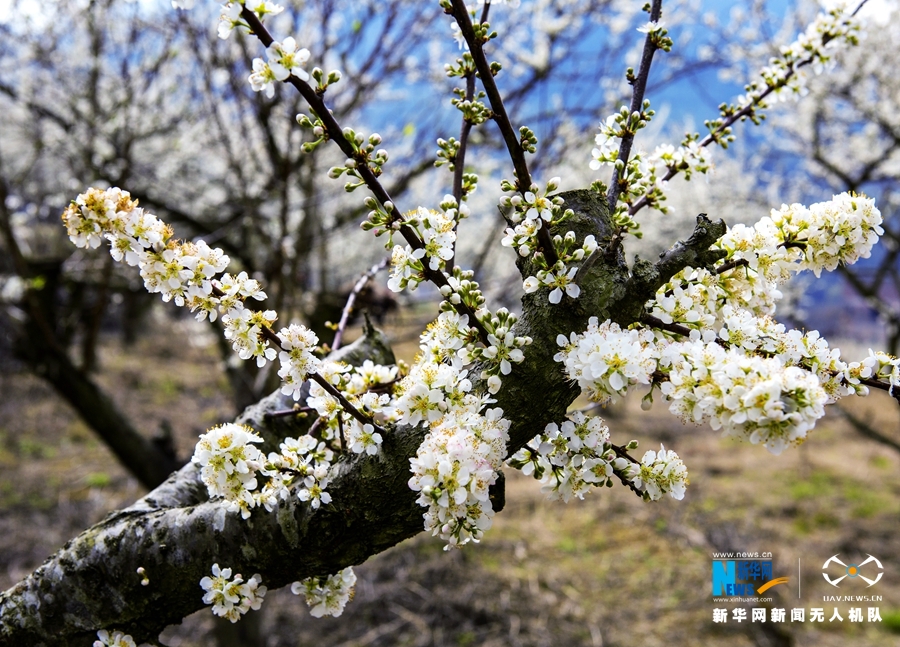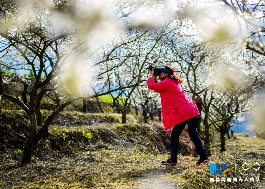 李花白茫茫一片犹如“冰雪世界”,吸引游客前往拍照留念。