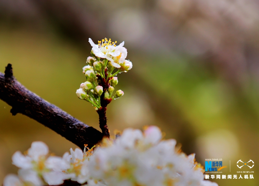 清晨,露珠不舍离开洁白素雅的李花,美得让人如痴如醉。