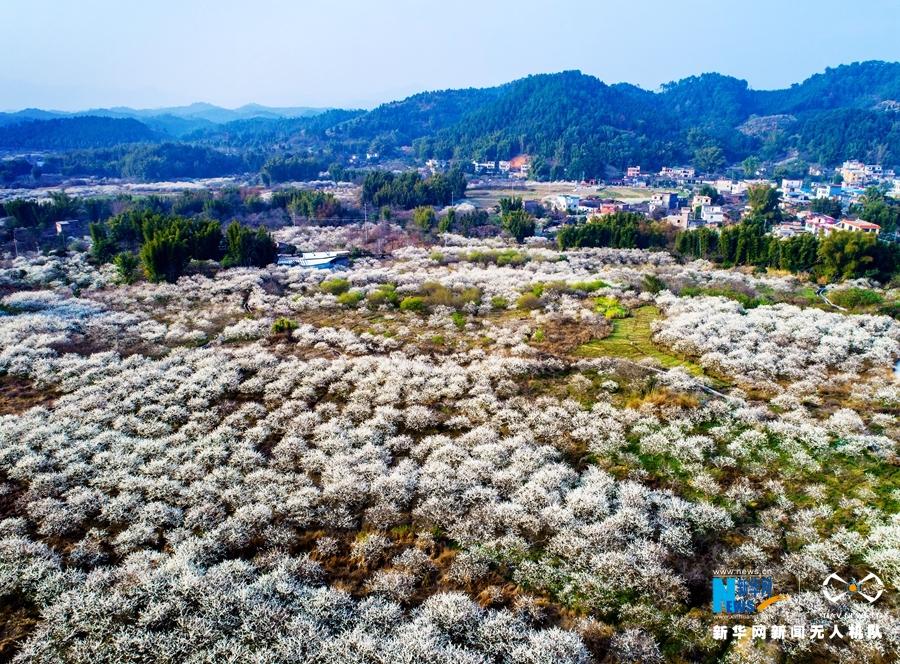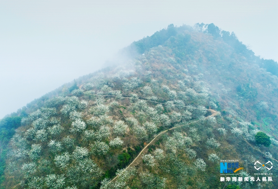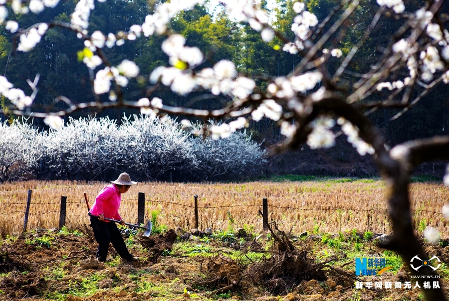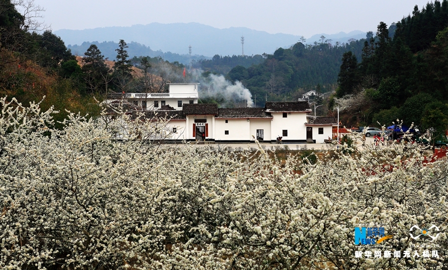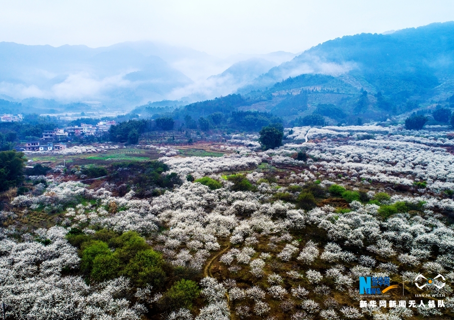 吕田镇有延绵5公里的李花香径,267公顷的素白李花香蔓枝头,团团簇簇,堪称南方的“雪景”。