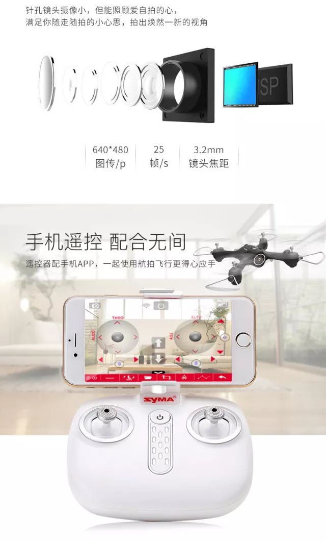 X23W的操作十分简便。得益于SYMA多年来稳扎稳打的飞行稳定技术,用户可轻松地操作X23W空翻、抛飞,或者与朋友来一场障碍竞速比赛。只需在智能手机上下载“SYMA GO”App,通过WiFi连接无人机,就能尽情享受指尖上的飞行乐趣,正在做到到手即飞。