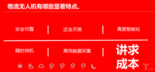 首先第一个它安全、可靠,只要你希望用它运送东西,你一定希望它是安全可靠的,它不能在中途飞到一半掉下来,它不能在起降的时候产生其它的东西出去,再跟大家说汇报一下,京东无人机从进入西安,从6月份开始正式运营以来没出过一次事故,这个是我们在目前比较好的一个安全上的保障,近全天候,为什么是近全天候呢?它并不是全天候,但是它能够在大部分天气情况下执行我们的飞行任务,为什么这么说呢?民航客机一样有一些天气是不能飞的,你不能要求无人机全天候什么时候都可以飞,但却是我们在努力增加它可以应用的环境,然后高度智能化,也就是说在未来或者说在现在,我们能做到的是全程的自动化,全程的无人操作,无人干涉,能够自己规划线路,这是物流无人机必须要做到的事,再有就是随时待机,因为你不知道什么时候需要送,所以你无人机需要随时都可以飞,目前我们看包括一些消费无人机也不是随时能飞的,但是物流无人机我需要你飞的就必须要飞。
