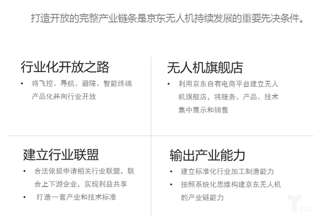 我们产业的发展路径,比如我们会有行业化的开放,我们会把很多技术产品,因为我们不是完全说真正靠技术吃饭,所以我们逐渐逐渐会把一些成熟的产品和技术和框架公开出来、开放出来,变成一个开源的东西,打造自己的产业生态,我们无人机的旗舰店,线上有京东的旗舰店,一方面线下的,再一个有行业联盟的东西,还有输入我们的产业能力,海内外去进行输入。