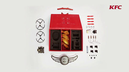 全球最有创意的快餐店营销奖一定要颁发给肯德基的印度公司,之前推出的各种创意餐盒别具特色,每一种都让人印象深刻,像是之前推出的Gamer's Box 2.0蓝牙玩家炸鸡盒、具有充电功能的Watt A Box外带盒,这回再出新招,推出让你可以有吃又有玩的无人机烟熏鸡翅餐盒(KFO)!