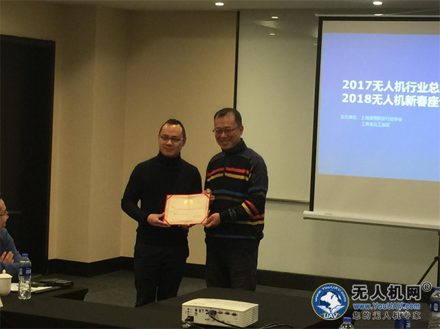 在会议现场,上海通用航空行业协会曹征秘书长引荐了无人机产业促进中心,并授予陈光文为协会无人机产业促进中心主任并颁发证书。而后,曹征秘书长介绍了即将在上海世博展览馆召开的上海国际警用及安防无人系统博览会,突出了本届展会的警用、公安、消防、安防的背景,现场嘉宾对参展反应热烈,积极响应。