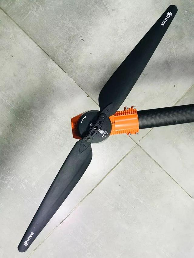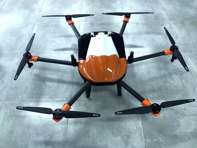 首先,不同于此前两款产品的四轴设计,新品云蜂植保无人机升级为六轴旋翼,更结实也更稳定。整个机身在“体型”上前后拉长,采用前中后模块化设计,便于更换药箱和电池的更换,同时也让后期的维修变得容易。黑色机身整体采用3mm碳纤维板材,橙红色外壳主体呼应六个同色电机,电机包裹式防撞保护设计,安全系数显著提升。螺旋桨采用高强度工程塑料,可折叠设计,便于拆卸与维修。