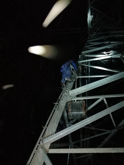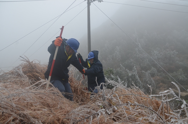 近日,寒潮持续,南方电网广东公司韶关城区供电局技术人员正在进行防冰特巡。
