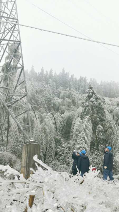 近日,寒潮袭击贵州。南方电网超高压公司贵阳局工作人员正在开展特巡。