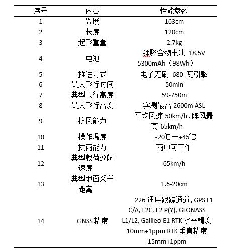 表1.1 Sirius PRO无人机测图平台主要性能参数