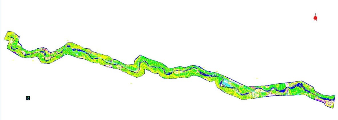 根据河道长度及走势情况,本次项目共设计12条带状航线如图2.2所示,带宽200m,地面采样距离(GSD)7cm,飞行高度272m,航向重叠75%- 85%,旁向重叠65%。