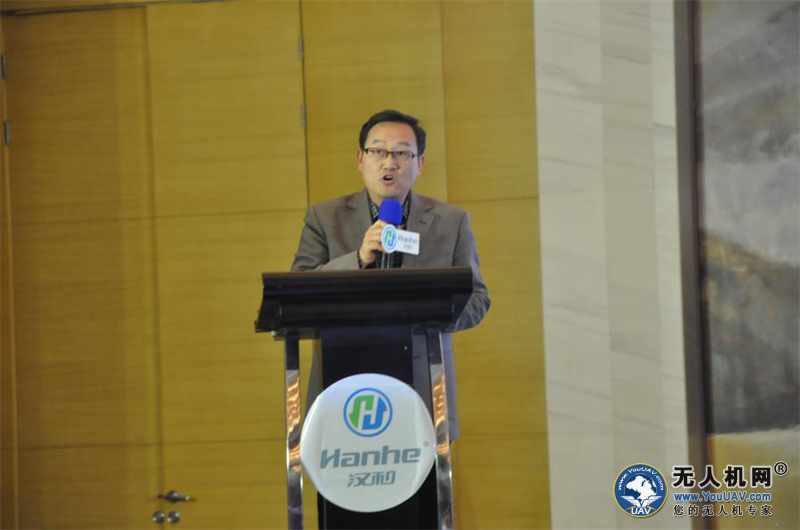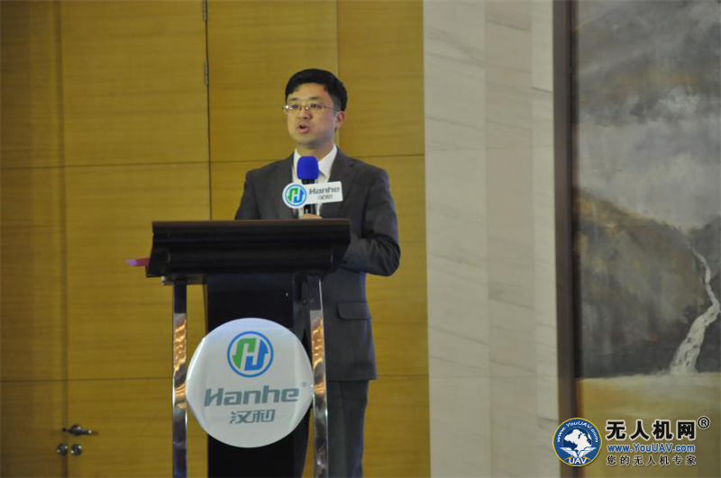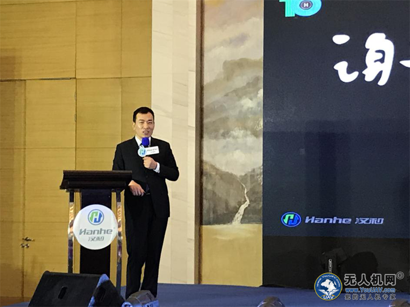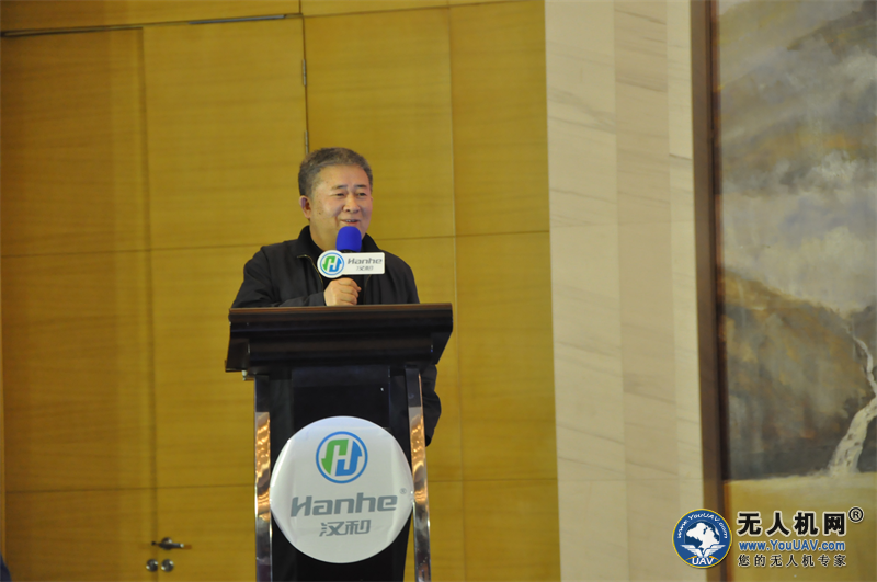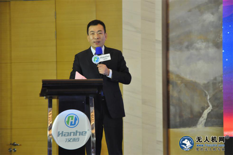 汉和航空总经理孙向东向现场嘉宾介绍人工智能、无人机、大数据对目前社会的作用发展。同时,向嘉宾介绍和讲解汉和新品农用植保机的科技特点和技术含量。他表示汉和新款植保机对于农业植保来说其不单单只是一台作业的工具而是一台拥有各种计算功能的移动式电脑。