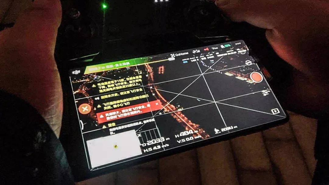 另外,还有一张他特地让我炫耀的夜间飞行遥控器照片。我看了画面里那一大堆的警报信息真是感觉心惊肉跳!看看当时大疆Mavic Air的飞行高度已经接近极限的500m,而飞行距离超过两公里!此时遥控器好像已经发出了因为电力不足而自动返航的指令!这一刻究竟发生了什么? @pure白box 当晚又拍到了怎样精彩的画面?让我们期待他自己的讲述吧!