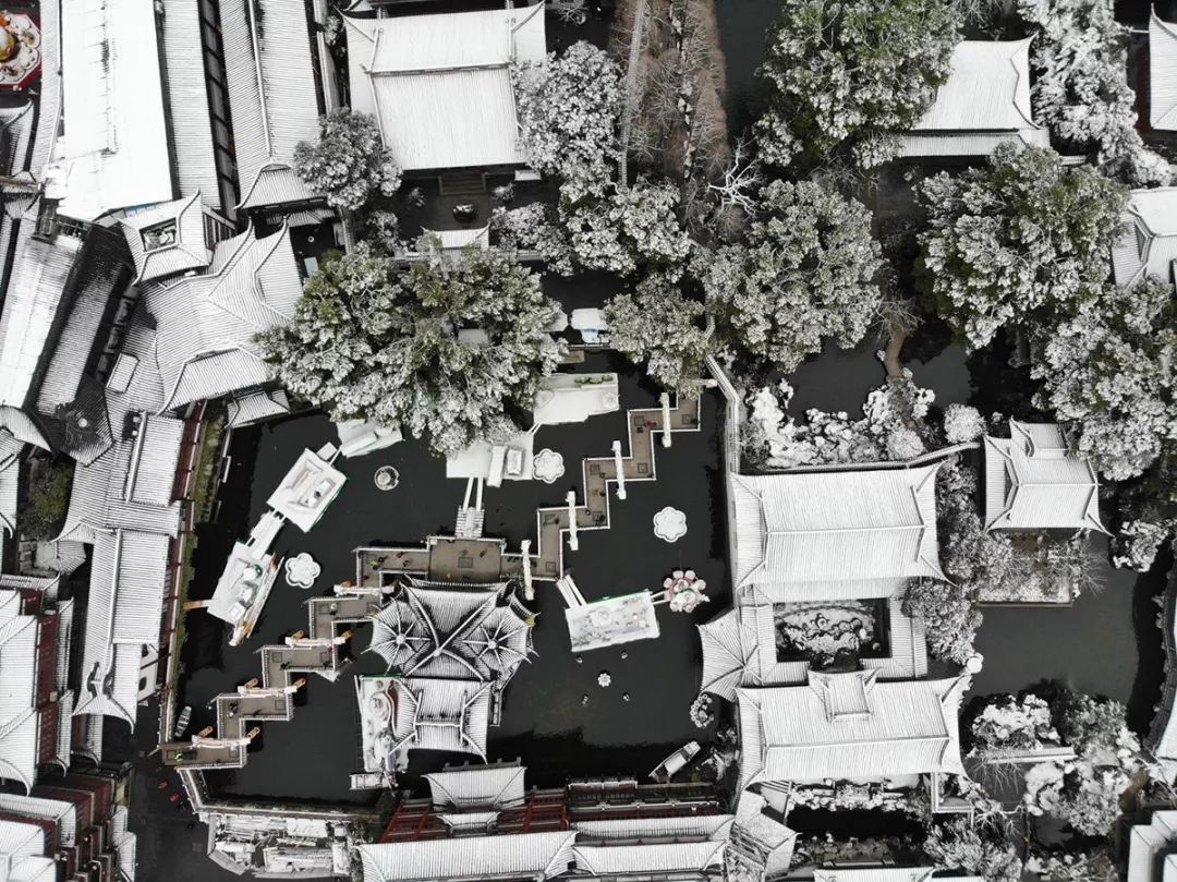 第二张是@pure白box 同学前两天用大疆Mavic Air拍摄的上海豫园九曲桥雪景画面(原图缩小),这曝光这细节真的是非常漂亮!