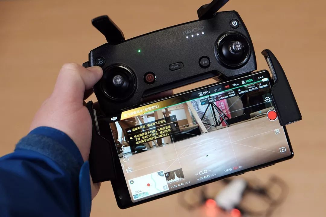 3、我先在办公室里放飞了一下大疆Mavic Air,感觉依靠光学定位系统,无人机的稳定性和操控性都极佳。但在室内环境中如果你不关闭避障系统,无人机会因为探测到周边环境而一直发出警报并无法左右移动。但如果关闭掉避障,你又要小心不要在室内炸机;