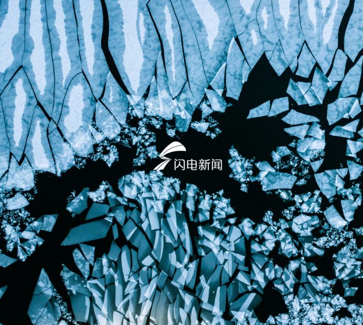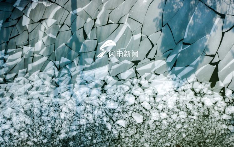 图为:垂直视角下的济南大明湖水面被碎冰覆盖。