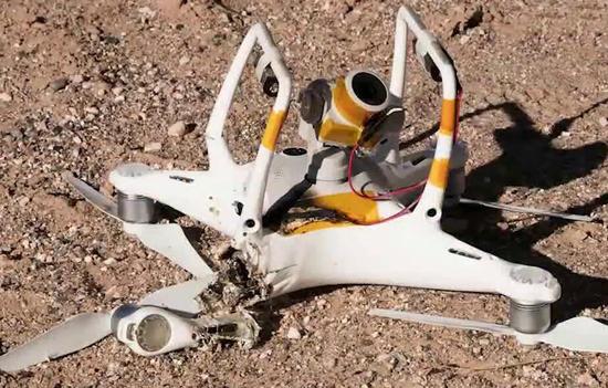 除了右侧旋翼推进器外,高能激光束烧毁的可能还有机身内部的控制线路,在遭照射后不久,无人机直接失控坠毁。