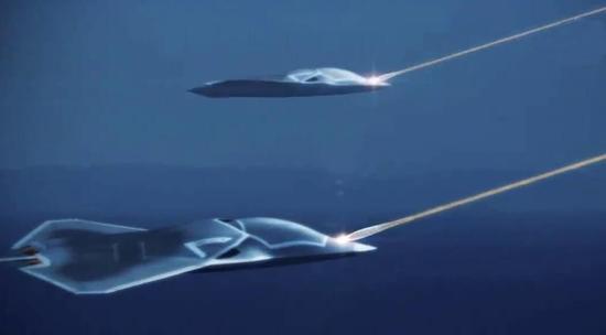 图为2架搭载激光炮的无人战机,协同拦截敌军弹道导弹想象图。